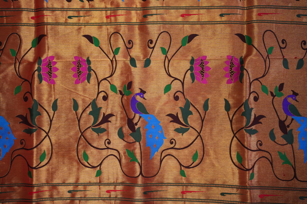 Paithani sarees, from Maharashtra, are luxurious silk sarees known for their vibrant colors, intricate handwoven motifs, and rich pallu work. Celebrated for their elegance and grace, these sarees are perfect for weddings and special occasions, showcasing India’s cultural heritage.
